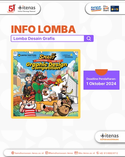 - Lomba dilaksanakan antara 12 Agustus hingga 1 Oktober 2024. Pengumpulan sudah dapat dilakukan dari tanggal 15 September hingga 1 Oktober 2024 pukul 15.00 WIB melalui link berikut : https://bit.ly/UTGraphicDesignCompetition2024