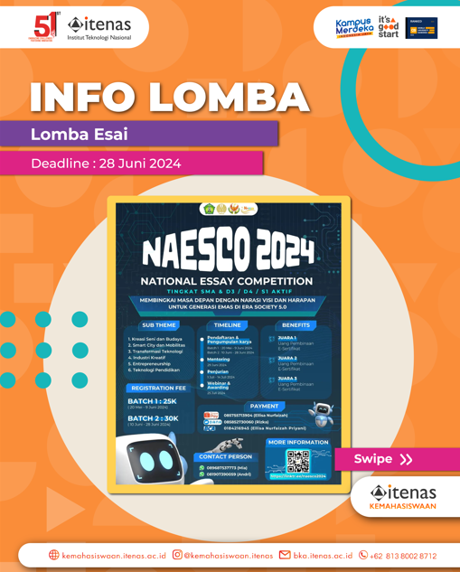 Informasi Selengkapnya : Guidebook Lomba Essai Nasional Naesco 2024