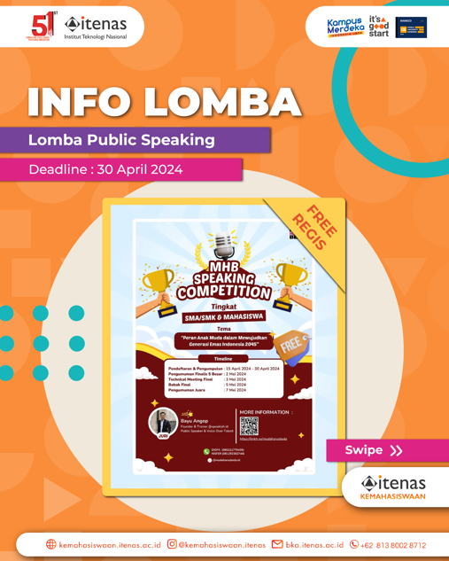 - Peserta wajib follow akun instagram @mudaharusbeda.id dan meng-upload poster MHB Speaking Competition 2024 yang tersedia di feeds instagram @mudaharusbeda.id pada instastory akun masing-masing.