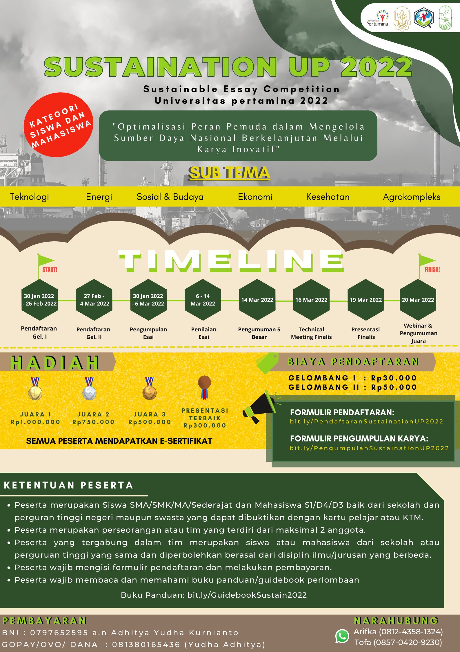 1. Pendaftaran malalui link bit.ly/PendaftaranSustainationUP2022